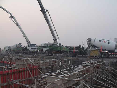 1月17日7:18分,伴随着爆竹声响, 两台砼泵车在长江钢铁技改项目炼铁工程1#热风炉基础上空轻舒长臂,将热气腾腾的砼输送到热风炉基槽中。1#热风炉基础是长江钢铁技改项目炼铁工程浇注的第一座大体积砼基础,这为后序热风炉炉壳的安装奠定了基础。