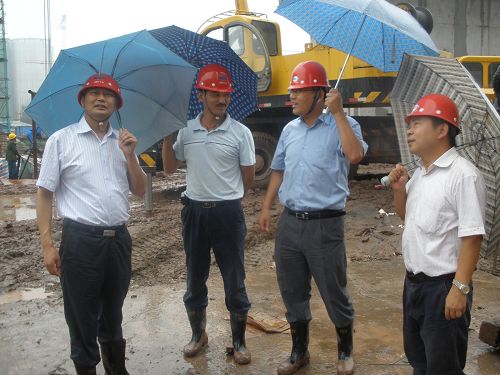 喻世功副总经理在机电公司经理唐克斌的陪同下,于11日访问完四川达州钢铁股份有限公司后,冒雨赶到达州海螺水泥熟料生产线A标项目部。在达州项目部项目总工王锐和副经理储令华的陪同下,踩着泥泞的施工便道来到施工现场,考察指导工作。水泥工程公司副经理胡文奎就达州海螺等西南地区各项目情况向喻副总经理进行了汇报。喻世功副总经理详细了解了施工现场的质量、安全和进度等管理情况,对生料均化库工程、窑尾工程的滑模质量给予了肯定,并希望大家再接再厉,把剩下的工程项目做好。