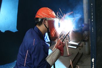 仪式后,参赛选手分成四组,开始了紧张有序的比赛。比赛现场焊花飞溅、群情振奋。这次电焊工技能大赛分为两个部分:一是进行理论测试,时间为1小时。理论考试题目类型分判断题、单项选择题、多项选择题。出题难度以高级工应知为标准。二是实际操作比赛,时间为2个半小时。比赛内容分为:用焊条电弧焊对板材进行仰焊、用CO2焊对管材进行垂直固定焊、用全氩弧焊对管材进行水平固定焊。整个比赛进行了两天时间。