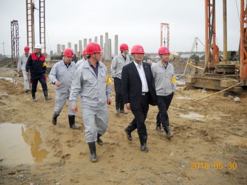 喻世功副总经理一行到达工地后,先到施工现场仔细查看了工程的质量、安全、施工进度及现场文明施工等情况,随后认真听取了项目经理部所做的工作汇报。喻世功副总经理对项目经理部前期的各项工作给予肯定,对项目管理团队良好的精神面貌表示满意。他指出,工程开局较好,现场总体筹划得当,但后期工期紧,工程量大,项目部要有充分的思想准备,要抓紧干好在手的分部工程,同时还要做好经营管理工作;他要求项目部始终保持高度的质量意识和安全意识,施工过程中的关键工序要有项目部领导现场监督,始终如一地以高水平的现场管理来干好工程,让业主满意;要积极践行公司企业文化,赢得信誉。他还嘱咐项目部领导班子要多关心年轻同志,要从思想、技术、作风等多方面培养,使年轻人尽快成才,早日挑起大梁。