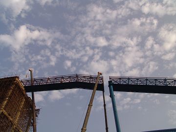 通廊主体结构分为4个单体结构,最高点标高为+47.9m。通廊长65 m,宽4.3m,重118t.施工时,二台160t,一台260t汽车吊同时起吊,确保了吊装一次成功。WJIBC皮带通廊的全线贯通,标志着华菱湘钢储焦工程已全面进入设备安装调试阶段,按期实现业主确定的一个重要网络节点,显现了十七冶信守合同、履行义务、精心组织、科学施工、攻坚克难的责任感。当最后一节118t通廊稳妥就位时,受到了湘钢工程部沈京宁副部长和中冶长天领导的高度评价和称赞。