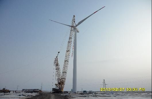 2月27日,吉林长岭三十号风电场工程最后一台风力发电机组叶轮吊装成功,由十七冶风力发电工程技术公司承建的第一个综合性风场主体工程圆满完成。 吉林长岭三十号风电场建设工程由30台风力发电机组基础施工、机组安装和箱变安装组成。从2009年10月31日第一台风机开始安装到所有风机安装完成,项目部始终坚持“高效严谨、精细务实”的企业作风,充分发扬艰苦奋斗的精神,在四个月的施工中,遇到了当地30年来气温最低和低温时间最长的恶劣气候,平均气温为-23℃,最低气温达到-38℃,在如此恶劣的施工环境中,项目部全体人员仍坚持施工,即使新春佳节也没停止施工,为项目提前完工做出贡献。 吉林长岭三十号风电场主体工程的完工不仅预示风力发电工程公司在严寒地区施工能力的提升,更标志风力发电公司从单一的风机安装向综合风场施工的成功转型。