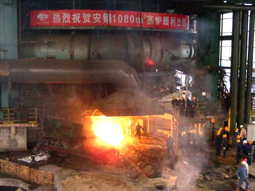 安钢1080m3高炉本体系统工程从2009年11月5日破土动工, 2010年1月18日高炉炉壳开始安装,5月10日高炉炉壳封顶,9月15日高炉烘炉。