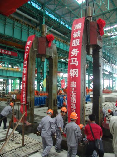 随着马钢股份有限公司副总经理高海建下达的吊装令,两座58吨重的轧机牌坊被先后缓缓吊起,准确地落在轧机牌坊底座螺栓上,吊装取得圆满成功。轧机牌坊的吊装,标志着马钢高速车轮技改工程炼钢、连铸和轧钢三条主线系统全面进入设备安装新阶段。