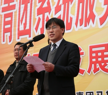 马鞍山市副市长龙李海发表讲话。他指出,通过启动仪式,广大团员青年一定会鼓足干劲强服务,雷厉风行抓落实,不辜负市委、市政府的殷切希望,确保“十二五”开好局、起好步,以优异的成绩迎接建党90 周年,为开创科学发展新局面、建设和谐幸福马鞍山而努力奋斗。