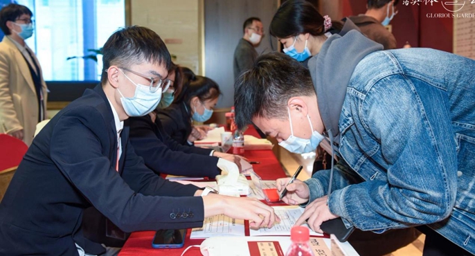 一线的营销人员从前期产品定位到后期营销方案、从推广组织到案场接待、从产品介绍到物业服务流程,无论大处还是小节都反复斟酌、不断推敲。对每一位到访的客户都做到仔细接待、并多维度全方位的进行客户心理引导,即展现了项目良好的服务品质,又确保客户对项目有充分的认知。在客户选房期间,全体工作人员不辞辛苦,连续多日加班。无论是入场的防疫检查、签到身份核验、选房过程、还是最终的签约交款环节,都精心落实,展现了对客户的人文关怀,体现了中冶的企业形象。