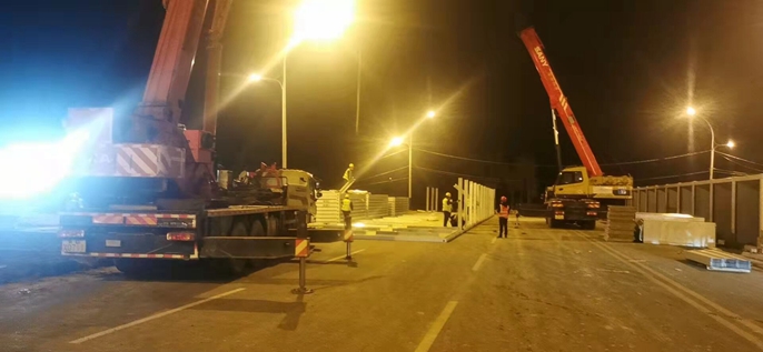 惠民县方舱临时隔离点位于山东省滨州市惠民县孙武三路东寨子村,隔离点隔离房间共计309间,建筑面积5400平方米,一期建设隔离房间207间,二期建设隔离房间102间,办公用房及其他服务用房30余间,预计总建筑面积6800平方米,3月17日确保完工达到入住要求。自开工以来,建设队伍24小时不间断施工,争分夺秒,确保项目尽早完工。