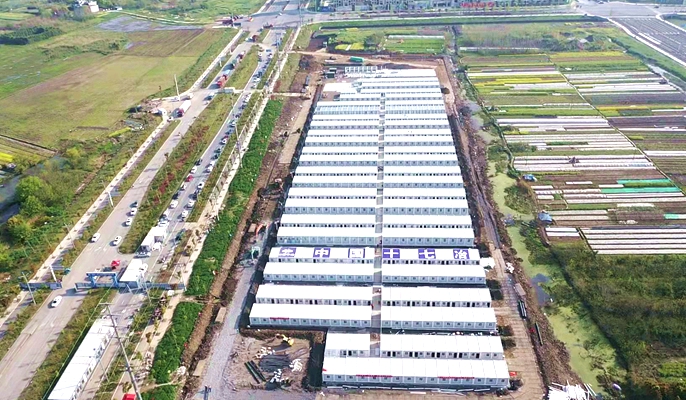 目前,无为市疫情防控隔离点项目隔离仓集装箱材料和室内配套设备已经全部进场,主体安装完成95%,工程即将完工。为助力打赢疫情歼灭战,项目部24小时不间断施工,加速推进各项施工任务。接到援建请求后,公司迅速集结骨干力量,立即成立党员突击队、青年突击队,并于48小时完成设计图纸。动工以来数百名管理人员及工人坚守施工一线、昼夜奋战,克服了工期紧、任务重、物资紧缺、天气恶劣、环境复杂等困难,快速推进现场施工任务高效有序进行。