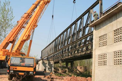 十七冶几年来主攻了枞阳海螺一至四期生产线主要建安工程,在四期工程中承担了一条5000t/d熟料生产线和输送通廊工程,建安处作为钢构制安专业被优选进入了四期工程。过河跨是这条1.5公里通廊钢构安装的难点部位,跨度64.5米,整体重量117吨,横跨河流,两岸地形复杂,地质松软,使吊装工作异常艰巨。为此,建安处高度重视过河跨吊装,自始至终坚持“高效严谨,精细务实”的作风,组织专业技术人员和技术过硬的业务能手多次深入现场勘察情况,研讨吊装专业方案,并积极与业主单位和项目部加强协作,为安全保质实现吊装目标提供了可靠保证。过河跨的成功吊装,再次显示了建筑公司专业实力,也为四期工程按期投产提供了原煤输入和熟料输送保证。