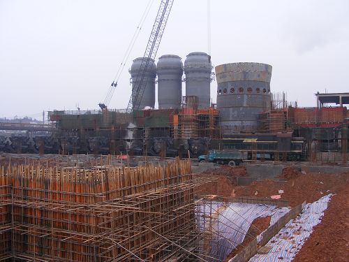 安钢1080m3高炉四大节点:热风炉炉壳安装计划十四带,现已完成第十八带;高炉安装计划第四带,现已完成第六带,该两项节点已超额完成业主要求的工程节点。最难的是出铁场平台和矿槽深基坑开挖和砼浇注的两大节点。该两节点的施工地点均在老厂三座生产高炉的铁道主线上,每几分钟就有一列火车通过,加之萍乡地区天气连续阴雨,给深基础开挖等施工带来诸多困难。根据这一情况,为完成节点,安钢项目部领导与城建公司领导协商决定,从马鞍山调来40余名精兵强将,在节前赶到萍乡施工现场,经过项目部全体参战人员共同努力,日夜奋战,分别于27日、28日砼浇注完工。