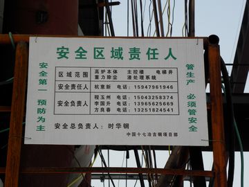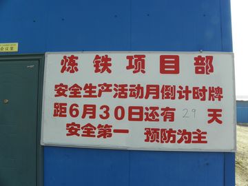从五月中旬开始,项目部下发了开展安全生产月活动的实施意见,确定每月月中和月底为安全检查、整改日。设置安全、质量表扬栏和曝光台。在三个主要工地各挂上两块永久性的安全区域责任人钢牌,项目经理时华钢为总责任人,项目副经理、总工和部室负责人以及各区域作业单位负责人为责任人。在项目部的醒目位置设置一块安全生产月每一天的警示牌,还在每个工地明显处拉上了醒目的安全施工宣传标语,营造浓厚的安全生产月活动氛围。