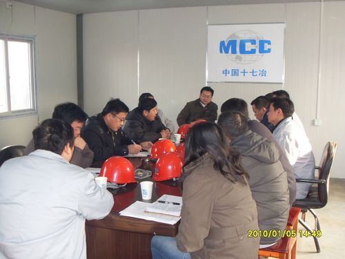 公司总经理助理刘伟、机电公司经理唐克斌在听取项目部领导和部门负责人的汇报后,提出了五点要求:1、做好工程施工过程中的风险控制,即:安全风险、质量风险、工期风险;2、抓好施工现场的签证工作,建立工程过程报量结算制度;3、加强与设计单位的沟通,加大二次经营工作的力度;4、抓好施工材料市场价格调研工作,对公司仓库剩余材料做好摸底清查工作,同时做好材料的差价进货工作;5、以“诚信社会为本,客户满意为荣”的经营理念来干好这项工程。