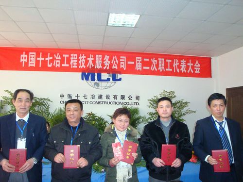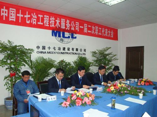 元月9日上午800,在激昂雄壮的中冶之歌《奉献辉煌》歌声里十七冶工程技术服务公司一届二次职工代表大会隆重召开。公司领导王澍、迟之宗、潘邦全、何承胜与33名职工代表参加了大会。