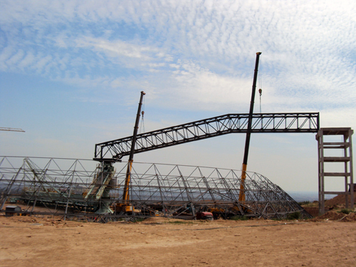 礼泉海螺原煤预均化堆场57米钢桁架吊装成功