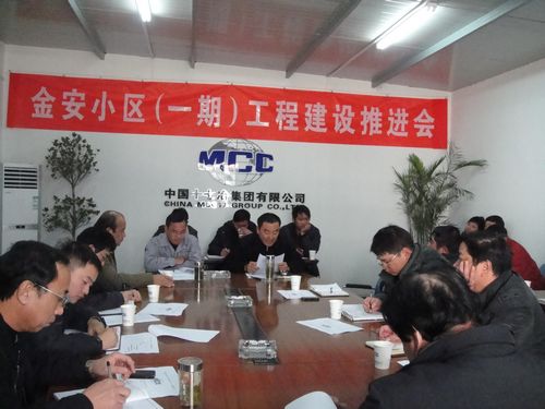 1228下午,中冶金裕置业有限公司(金安小区项目部)召开金安小区(一期)安置房工程推进会。传达市领导1225到十七冶集团公司调研指导时的重要讲话精神。项目部各部门负责人,以及各标段20位负责人参加了会议。张东风经理在会上对各施工单位、各标段提出了十项具体要求。