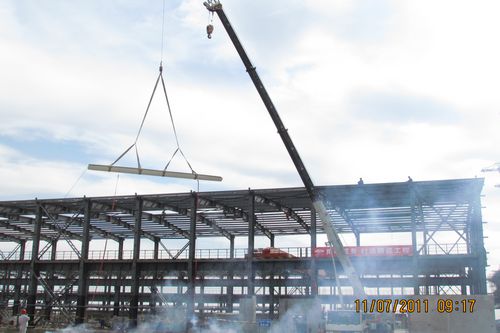 该工程包括电解铝车间A-B跨墙面、屋面彩钢板、采光带(含一、二号通廊)的制作与安装,厂房总长1250m,宽33m,高18m。工程中标后,酒钢工程项目部立即行动,精心组织,积极做好劳动力、工机具配置以及现场施工大临建设,确保了工程如期向前推进,获得到了业主和监理的一致好评。