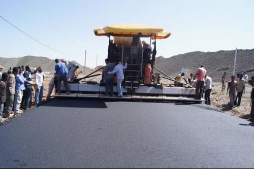埃塞公路项目完成沥青面层试验段摊铺