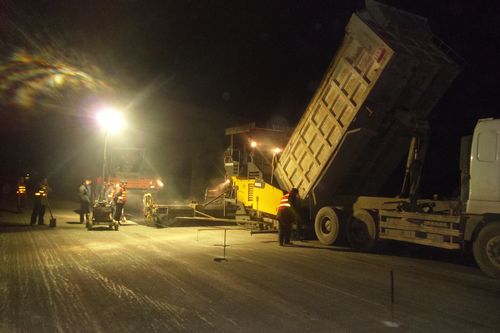 为克服雨季施工的种种困难,项目部打破常规作业方式,积极开展24小时昼夜施工计划,并制定“雨来我休息、雨停我工作的施工方案,项目安全、质量、施工管理人员跟班在作业现场,坚持“只要机械响,领导就在场”的原则,保质保量确保今年“五一”通车目标实现。