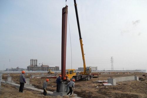 319上午,十七冶城建工程技术公司山东海螺型材项目原材料库房钢结构第一根钢柱平稳起吊,顺利就位,兑现了对业主的承诺,将钢结构吊装工期提前了26天。