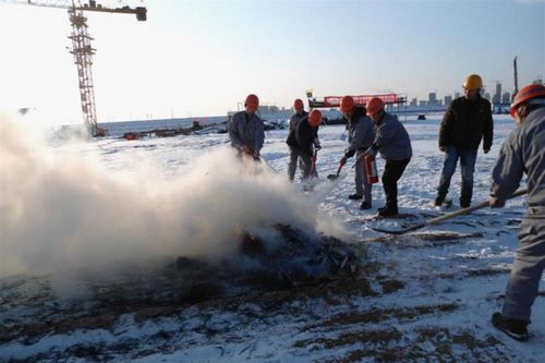 1123下午,十七冶城建工程技术公司沈阳南站项目经理部在施工现场举行了一场冬期火灾应急救援预案实战演练,并邀请监理代表到场检查和指导冬期施工的消防工作。