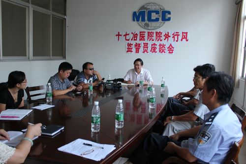 今年初,十七冶医院聘请了来自全市四大新闻媒体、公安、卫生、街道社区和中国十七冶集团的十位同志为院外医德医风、行风监督员。按照院外行风监督员的职责,这些院外行风监督员认真履行职责,主动配合医院做好行风建设。座谈会上,他们根据自已了解掌握的医疗服务、行风建设情况,提出了一些存在的问题,同时提出了许多好的建议和整改措施,并希望医院加大整改力度,进一步加强行风建设,提高医疗服务质量,更好地为广大患者服务。