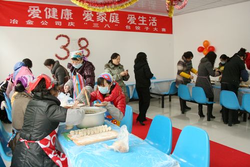 38下午,冶金工程技术公司小食堂里一片欢声笑语,饺子飘香。这里举行了一场别具风味的包饺子比赛,来自机关的20多名女职工欢聚一堂,共庆节日。