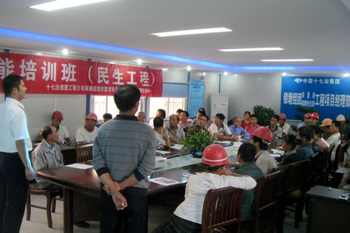 928,银塘组团安置房项目部与十七冶教育培训中心联合举办的农民工瓦工技能培训班在项目部会议室开班,项目所有农民工瓦工参加了此次培训。