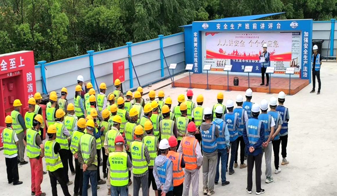 6月5日上午,中国十七冶上海分公司在罗泾智造园一期项目举行主题为“人人讲安全,个个会应急”的“安全生产月”启动仪式,分公司领导班子、机关部门负责人、各在建项目负责人及罗泾智造园一期项目全体管理人员参加活动。