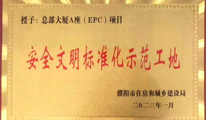 濮阳总部大厦项目获“濮阳市安全文明标准化示范工地”称号
