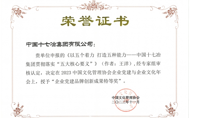 中国十七冶荣获2023年度党建与企业文化建设多项荣誉及成果