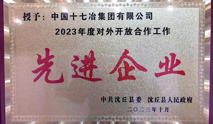 中国十七冶获评河南沈丘“对外开放合作工作先进企业”
