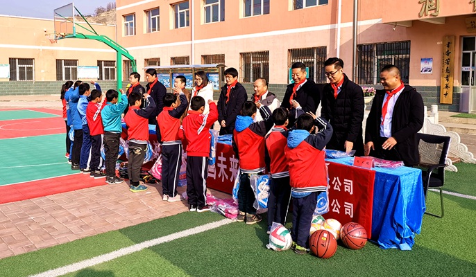 在甘肃省榆中县金崖镇金崖村明德小学,十七冶西北公司和五矿钢铁兰州有限公司一行为学校捐赠了足球、篮球和乒乓球台等体育用品,为24名贫困学生送上了书包、文具盒、铅笔、笔记本和读书卡等礼物,并叮嘱孩子们要养成良好的品德,树立远大理想,珍惜美好时光,勤奋学习。明德小学位于甘肃省榆中县金崖镇金崖村,距兰州市18公里,是一所六年制完全小学,在校学生365人,本次受助的学生大部分是留守儿童。十七冶榆中棚改项目部驻地位于明德小学附近项目负责人表示,在做好榆中县基础设施建设的同时,将进一步加大资助力度,将企业爱心传递下去。