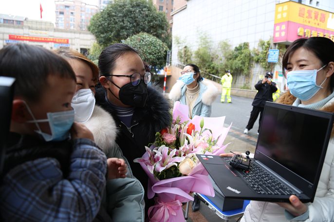 走访慰问时,医院党委慰问中还特别安排了视频连线环节,让在外职工与其亲属深情开展“夫妻对话”“母女(父子)对话”,面对镜头互致问候。