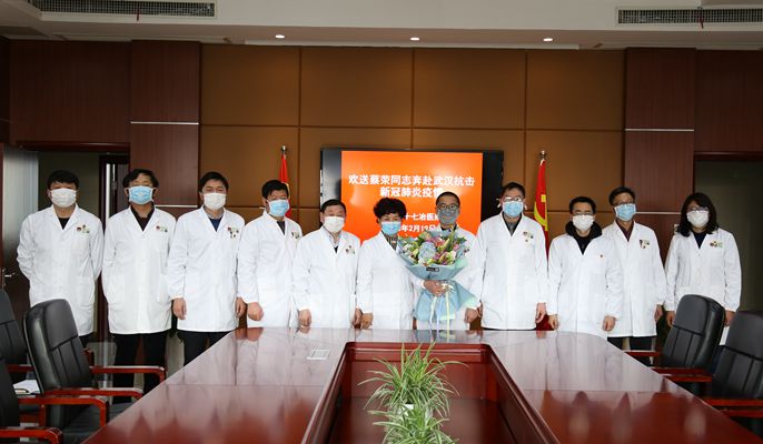 在欢送仪式上,医院董事长、党委副书记王仲恺,党委书记陈斯菊、院长尚昌凤叮嘱蔡荣一定要牢记初心使命,发挥专业特长,做好自我防护,协助武汉打赢抗击新冠病毒肺炎疫情阻击战;援驰期间,家中有任何需要,医院将全力帮助解决;期待英雄圆满完成使命,早日平安归来。