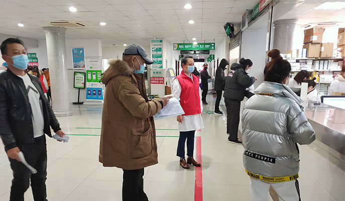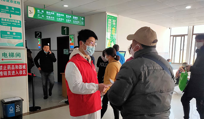 一大早,医院团员、青年志愿者,披上红马甲,两人一组,分散在医院门诊、住院、体检中心等人流较多的场所,做起了志愿劝导员。这些志愿者来自机关、门诊及部分临床科室,他们在各个楼层间来回巡视,劝导排队挂号、缴费、就诊的病人前后保持一米以上的距离;对于未规范戴口罩的病人及家属,做出有效指正,并对患者的问题给与解答。口罩遮住的是表情,却遮不住志愿者的热情。这些团员、青年志愿者用积极主动的服务在疫情形势严峻的当下温暖了前来就诊的群众。
