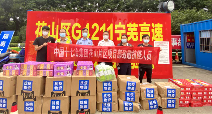 8月15日中午,中冶置业(安徽)公司花山片区项目部开展“抗击疫情”慰问活动,为坚守防控疫情一线岗位的马鞍山花山区住房城乡建设交通运输局志愿者们送去慰问品。