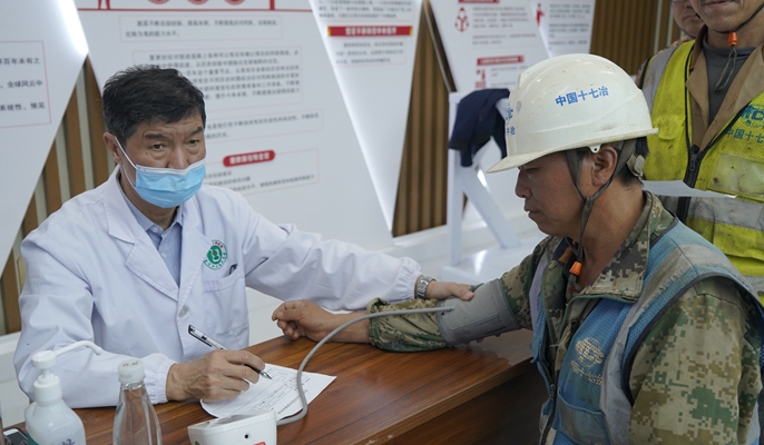 体检现场,项目部有序地组织现场人员进行体检。专业医护人员对他们进行了外科、血压、心电图等多项检查,并详细解答了工人们提出的各种常见病防治方面的问题,耐心细致地科普了易患疾病的防治事项。针对检查中发现的疾病隐患,医护人员及时告知疾病防治措施,将各种潜在的疾病消除在萌芽状态。