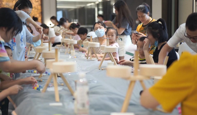 在DIY手绘制作活动中,职工们以家庭为单位,亲手组装制作和彩绘涂鸦架子鼓。在主讲老师们的悉心指导下,大家齐动手学习组装拼接、粘合调试、乐器装配以及构图技巧与绘画元素的提炼运用,孩子们发挥天马行空的想象力,用手中简单的制作绘画材料,把充满童趣设计元素的鲜活呈现在各自拼装完成的架子鼓鼓面上。职工们沉浸在难得的与子女协作创作中,简单的手工体验拉近了现场所有人的距离,也收获属于自己独特的手工艺术作品。