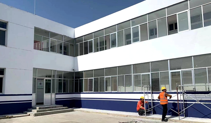 榆中县夏官营镇派出所营房因使用年限高、风雨侵蚀致使外观陈旧、墙体霉变、标识模糊,内部设施也严重老化。项目党支部在了解情况后,联系派出所并提出帮助进行修缮改造。改造前期,项目党支部技术人员多次实地考察,了解派出所实际需求,结合实际、精心策划,科学制定改造方案、精心计算粉刷面积、合理调配施工力量。项目部共完成对破损墙面修补、粉刷工作共计一千余平方米,修缮后的墙面焕然一新,得到警民们的交口称赞。